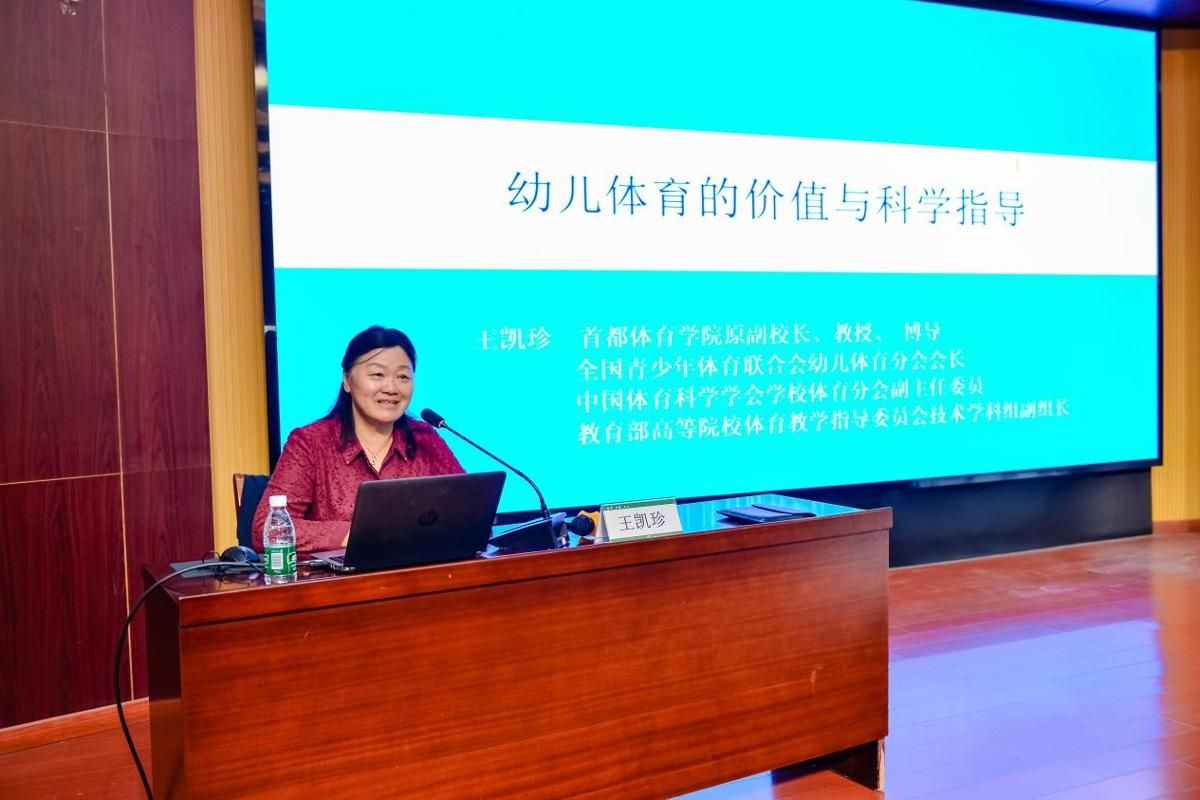 会议围绕 “幼儿体育高质量发展” 主题,有序开展各项议程。上午率先召开幼儿体育行业产教融合共同体筹备研讨会,与会代表聚焦共同体组织架构、运行机制、重点任务等核心议题展开深入研讨,凝聚系列合作共识;下午举行的启动仪式,标志着全国幼儿体育行业产教融合共同体筹备工作正式拉开序幕。在专家报告环节,王凯珍教授作专题分享,深入阐述幼儿体育的价值与科学指导方法,强调幼儿体育是促进儿童身心健康全面发展的重要途径,需要遵循幼儿身心发展规律,科学开展体育活动。黄靖惟教授以“幼儿运动游戏指导之理念”为题作主题报告,分享台湾地区在幼儿体育领域的先进理念与实践经验,为深化海峡两岸幼儿体育交流合作筑牢基础。