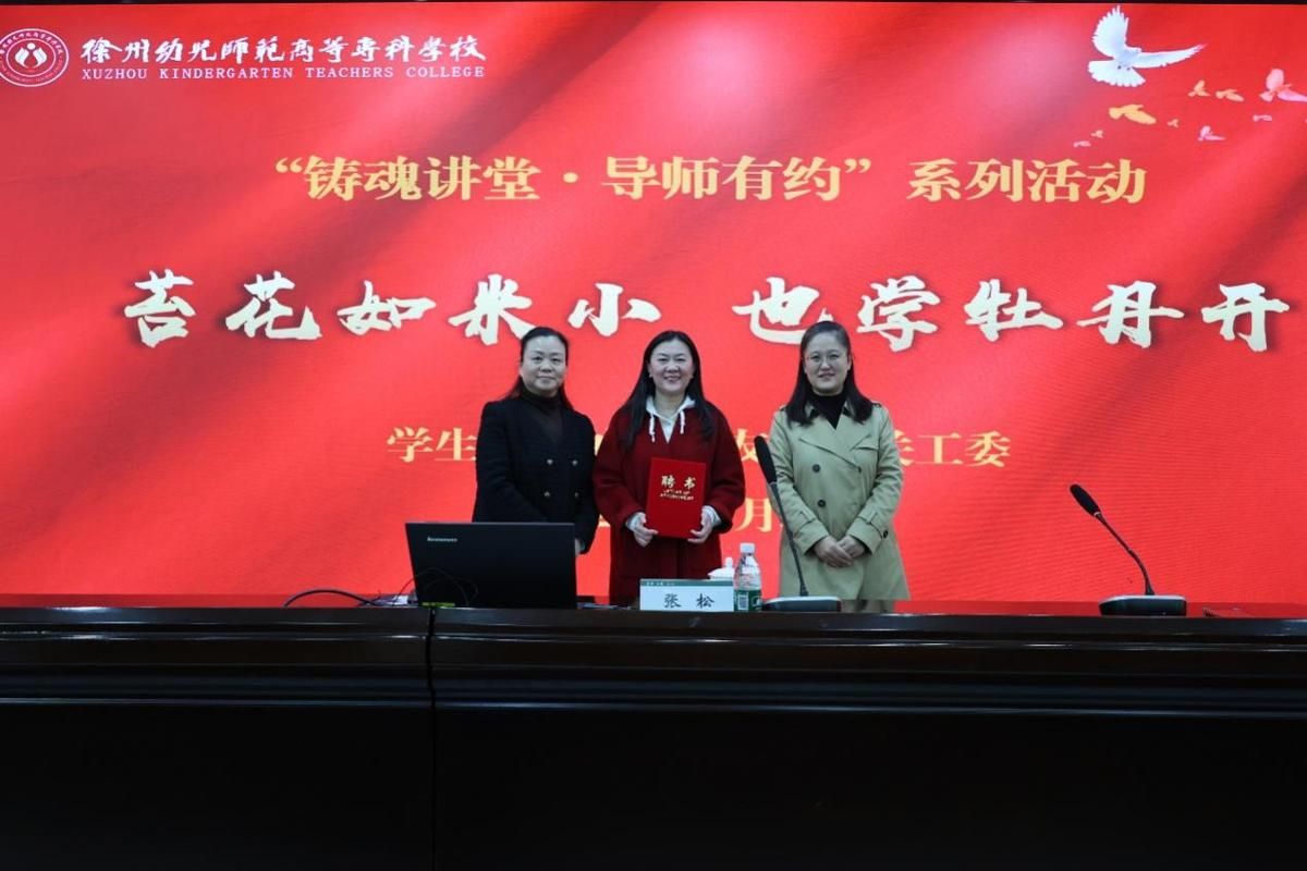 11月5日下午,我校在碧螺校区学术报告厅举行铸魂讲堂专题讲座,1995级校友、徐州市青年集团商务城小学副校长张松受邀担任主讲嘉宾。讲座由学生工作处副处长林琳主持,近200名学生代表参加活动。