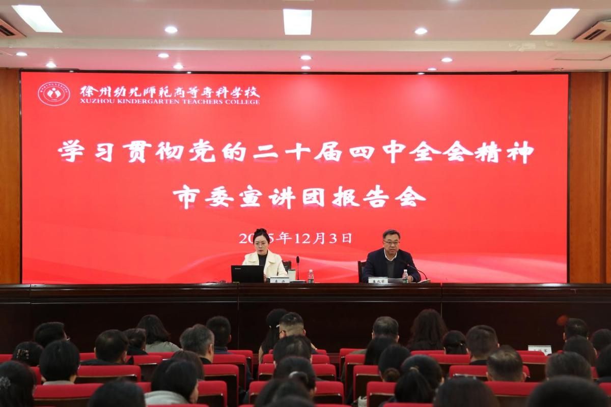 12月3日下午,我校在碧螺学术报告厅举办学习贯彻党的二十届四中全会精神市委宣讲团报告会。市委宣讲团成员、江苏师范大学中国近现代史纲要教研部主任李丹副教授作宣讲报告。在校全体校领导、全体中层干部、民主党派代表、马克思主义学院教师、辅导员及学生代表参加会议。校党委书记崔成前主持报告会。