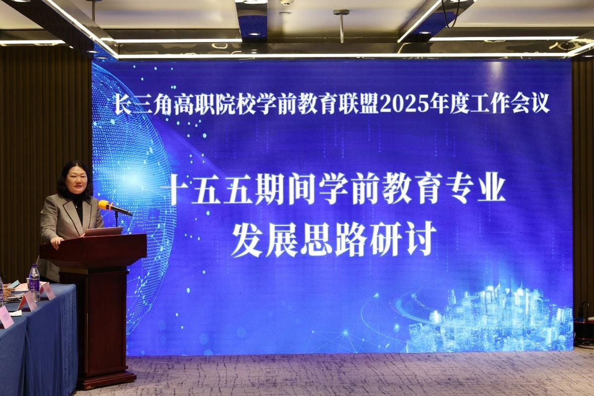 会上,教务处处长马中英作《长三角高职院校学前教育联盟2025年工作总结报告》。报告系统梳理联盟年度工作成效,从跨区域教研活动常态化推进、产教融合项目深度落地,到师资协同培育机制持续完善、人才培养质量稳步提升等维度,全面展现了联盟各单位凝心聚力、合作共赢的实践成果,生动诠释了“长三角一盘棋”的职教协同发展理念。