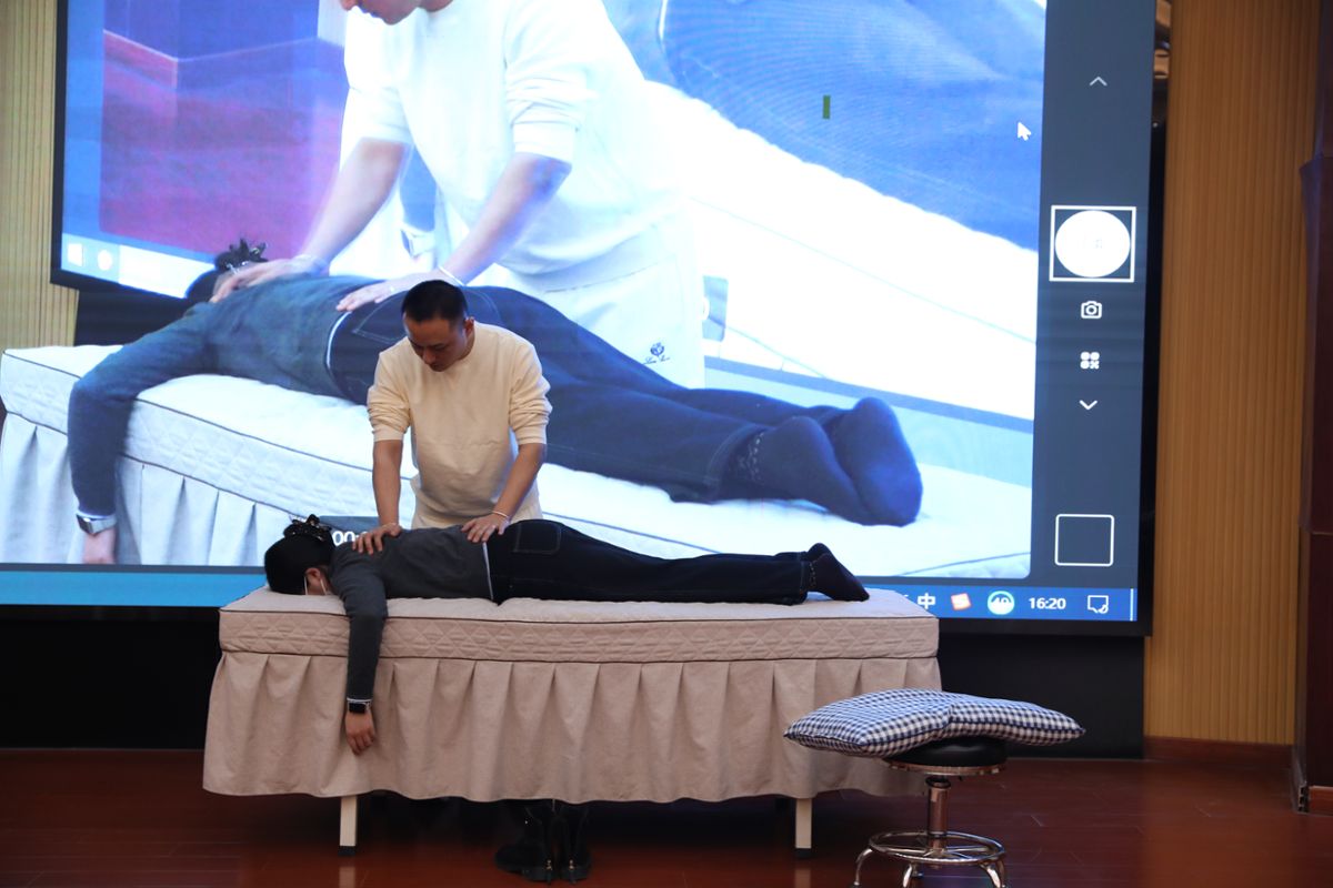 活动第二环节,陈芸、张然分别作了《从教育到健康的融合之旅》《裴氏正筋疗法的智慧与实践》的专题分享,阐述了非遗正筋技艺在健康产业中的价值与应用前景,系统介绍了这一百年技艺的文化内涵与实践智慧。健康服务与管理学院、体育学院学生代表参加了活动。张然现场展示的裴氏正筋疗法精准娴熟,调理效果显著,引来全场阵阵掌声,学生们沉浸其中,深刻感受到非遗技艺的独特魅力与实用价值。