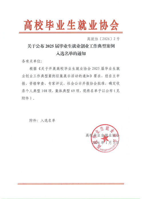 我校案例的成功入选,是对学校长期以来高度重视毕业生就业创业工作、不断创新工作方法与服务模式的充分肯定。学校将以此次入选为契机,凝练推广成功经验,持续优化就创业服务体系,深化校企协同与生涯教育,推动就创业工作实现从“好”到“优”、从“量”到“质”的跨越,促进毕业生高质量充分就业,助力每一位学子稳健迈向社会、成就精彩人生。
