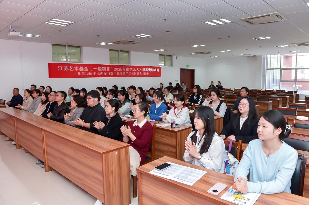 此次项目由江苏艺术基金资助、我校主办,紧扣非遗活态传承与儿童美育创新,汇聚高校专家、非遗传承人、一线名师授课,全面提升学员的专业能力与创新素养。课程内容丰富实用,涵盖儿童画创编、民间美术、非遗剪纸、扎染、黏土艺术、书法文创、创意字体、实验海报、AIGC应用、数字教育资源、虚拟展览、文创设计等模块,融合理论讲授、实践创作、实地观摩、自主研修等多种形式。项目的开展,对推动民间美术传承、数字化非遗创新、儿童艺术教育发展具有重要意义,将为江苏文化强省建设注入新的活力。
