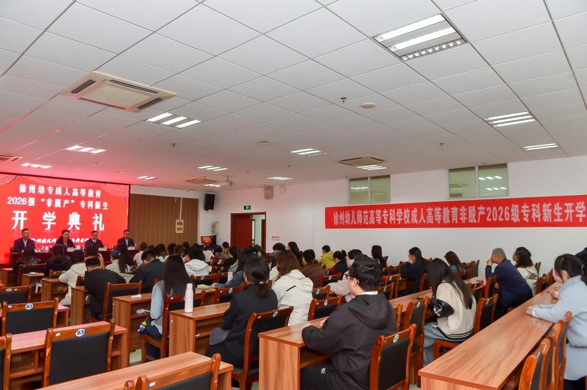 4月11日上午,徐州幼专2026级成人高等教育非脱产专科新生开学典礼在培训处举行。校党委副书记、校长孙卫芳,党委委员、副校长邓宪亮,培训处处长李强、副处长马岗峰以及2026级新生和相关工作人员共计80余人在现场参加典礼,典礼由邓宪亮主持。