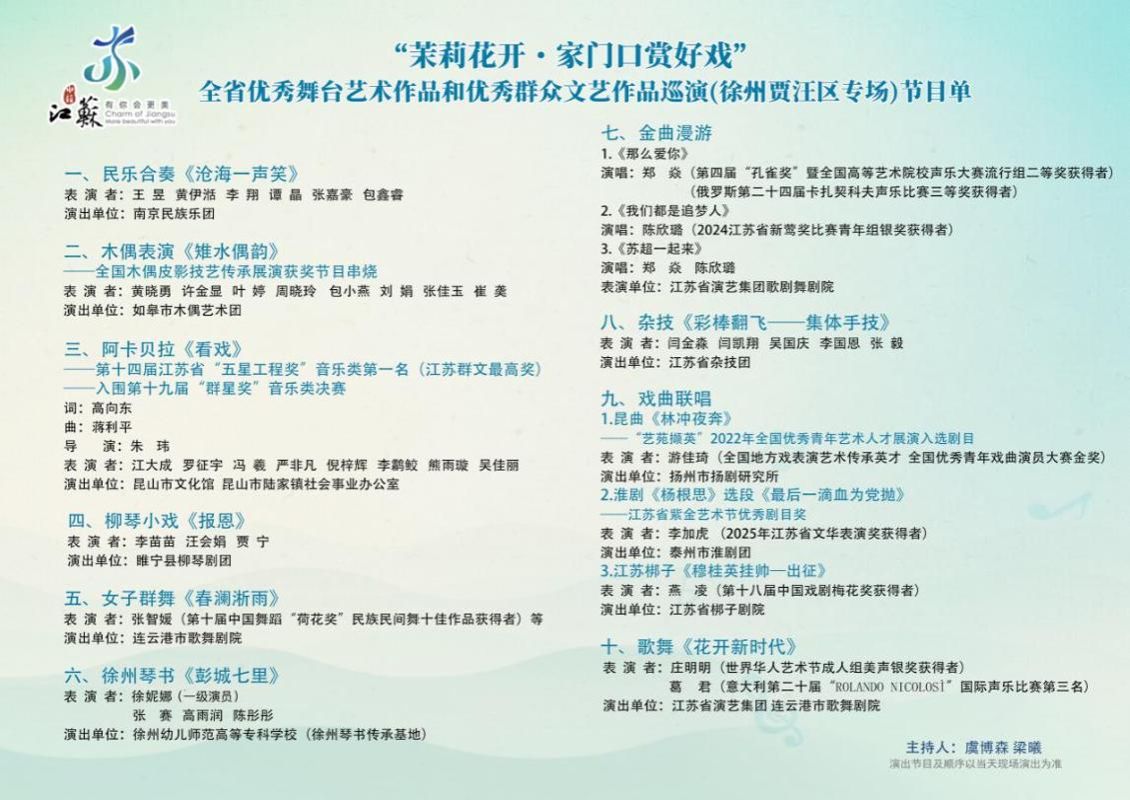 近日,“茉莉花开·家门口赏好戏”——全省优秀舞台艺术作品巡演徐州、南京专场相继上演。我校原创徐州琴书表演唱《彭城七里》亮相徐州贾汪区专场,展现了非遗传承的亮眼成果,师生们以地道乡音与灵动表演,收获现场观众热烈掌声。根据省厅安排,5月2日,音乐舞蹈学院师生将携作品登上南京市专场舞台,将徐州本土曲艺魅力带到省会观众面前。