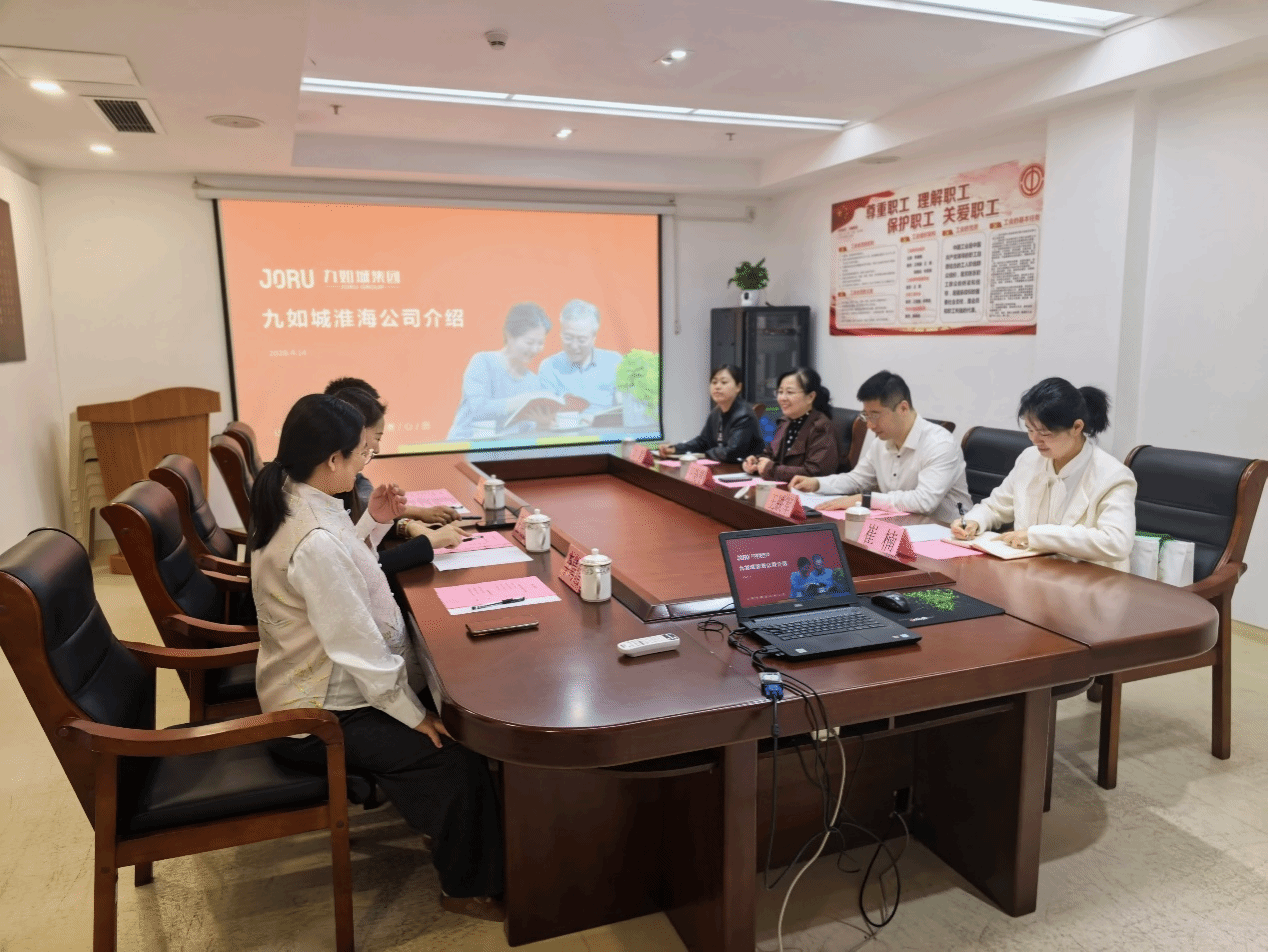 活动伊始,校领导一行在九如城集团淮海公司总经理王明丽陪同下,实地参观了康养中心的接待大厅、活力长者居住区、康复理疗室、医养结合诊疗区等核心功能区域,详细了解中心运营模式、智慧康养服务体系、岗位设置及人才能力要求,直观了解康养行业的发展态势与用人标准。
