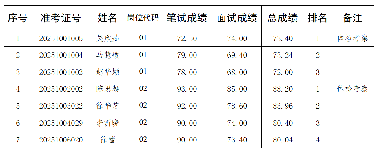 根据《徐州幼儿师范高等专科学校2025年公开招聘教师公告》的有关要求,现公布招聘考试总成绩。体检和考察工作由我校组织实施,请相关应聘考生保持通讯畅通,联系方式如有变化请及时告知我校。