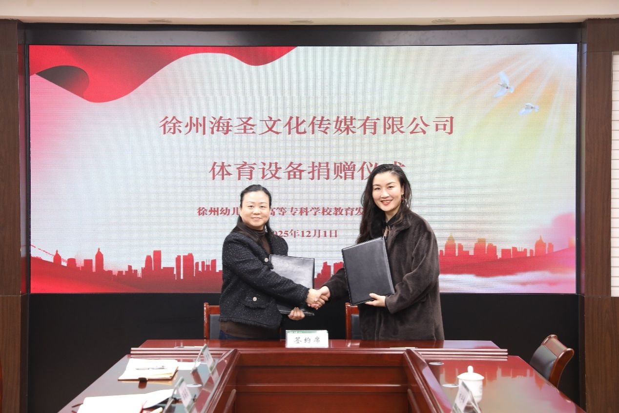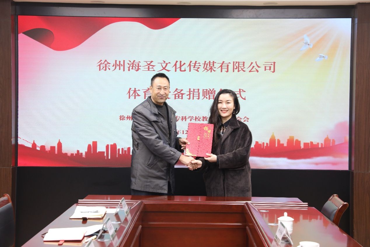 12月1日上午,徐州海圣文化传媒有限公司向我校赠送体育设备捐赠仪式在洞山校区208会议室举行。徐州海圣文化传媒有限公司总经理宋泓霖,股东张海燕,财务主管冯文娣,蹦床项目教师朱思瑶、刘宇婷,我校学生工作处处长、教育发展基金会秘书长陈繁,体育学院党总支书记田国祥,院长李海芸,副院长闻年富,副书记刘东亮参加了捐赠仪式。仪式由教育发展基金会办公室主任郭渝主持。