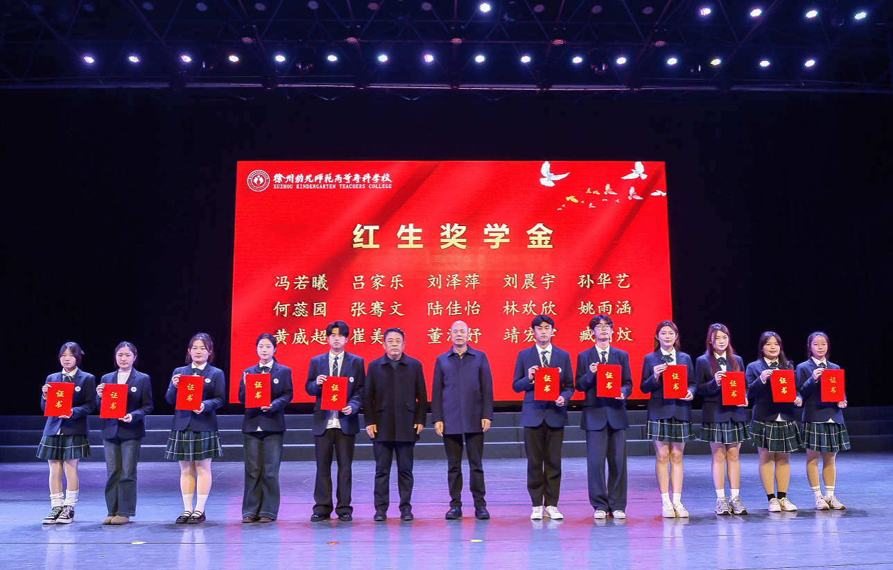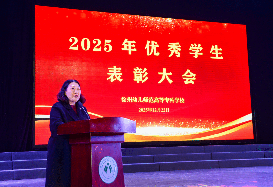 12月22日下午,我校在洞山校区尚美楼演播厅隆重举行2025年优秀学生表彰大会暨“徐幼微榜样”优秀事迹分享会。红生奖学金捐赠者葛红先生、薛田生先生,校党委委员、副校长王宁,校党委委员、纪委书记王铁军,幼教集团总园长程颖,优秀校友代表万金、陈小龙、梁状出席会议。学生工作处、团委相关人员、各学院党总支副书记和800名学生代表参加了此次会议,大会由学生工作处处长陈繁主持。